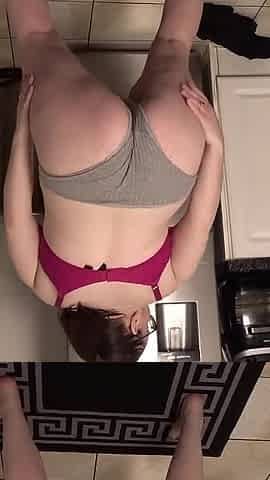 Sexy Stripping Leggings Top Bra and Knickers in the Kitchen