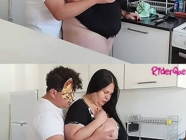 I Came to the Kitchen and Flashed My Cock to My Stepmom and She Sucks and Jerks It off Until I Cum