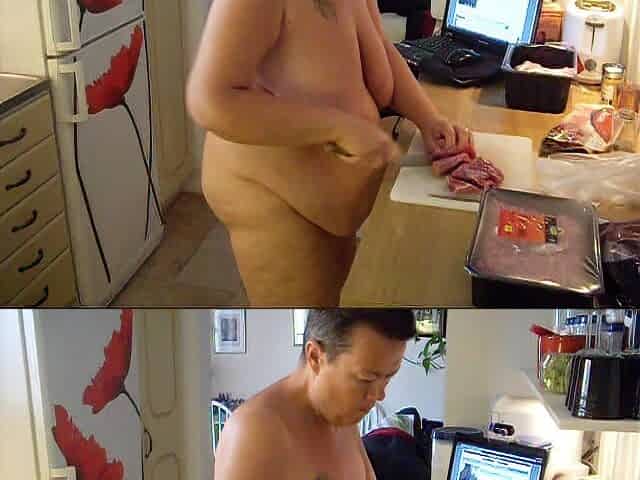 Jen Is Cutting up Meat All Naked
