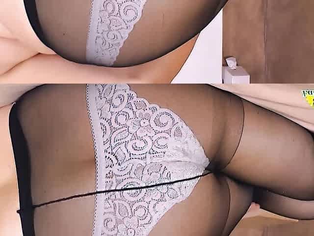 Wet Pussy of Mother-in-law During Masturbation in Pantyhoses in Nature