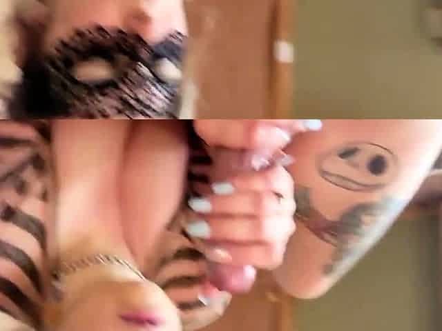 Busty BBW Milf Gives Frenulum Thumbjob to a Big Cock