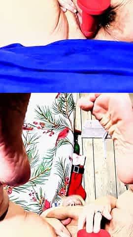 BBW Strips and Masturbates, Tasting Her Juices in Cute Christmas Lingerie