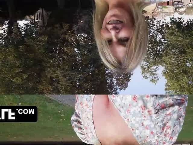 Busty mature Danica Collins spreads her legs in the public place