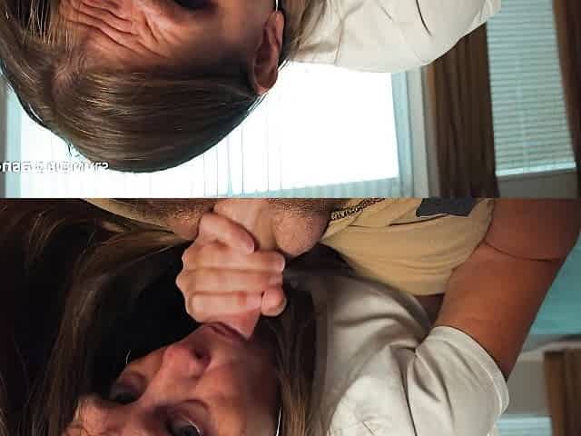 Stepmom with Big Tits Gives Deep Blowjob and Swallows Cum