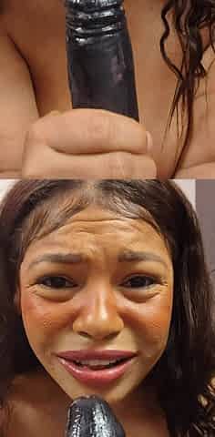 Cute Ebony Fuck Mout and Fuck Ass Glass Dildo