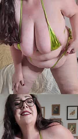 Sexy Plump Busty Brunette MILF in Tiny Green Bikini