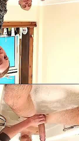 Jerking off dad's 9 inch giant knob whilst that guy bathroom
