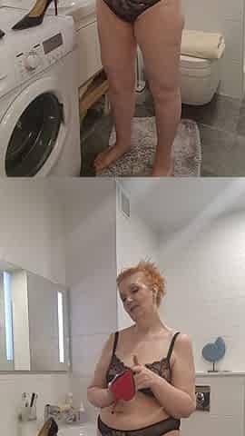 Red hair tattooed milf pussy fucking in the bathroom