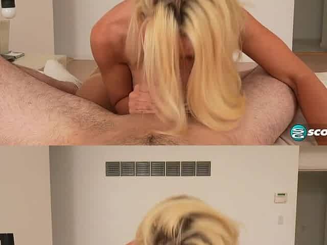 Busty blonde masturbates with her dildo until she reaches orgasm
