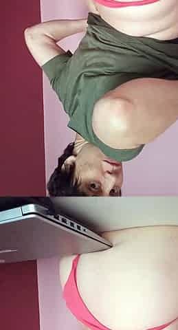 Sexy mother I'd like to fuck undresses without her pink suit and plays with her twat on balcony