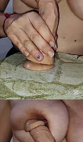 Cuarentona chupa con su gran y se masturba sus enormes tetas