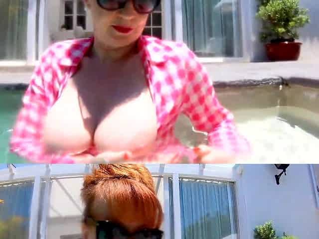 Red XXX sucking cock while in the pool