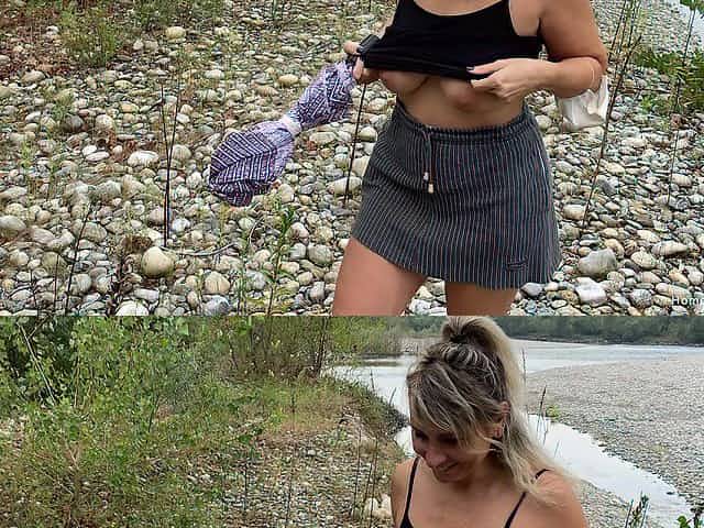 Blonde mature gives a BJ in outdoors and gets fucked from behind