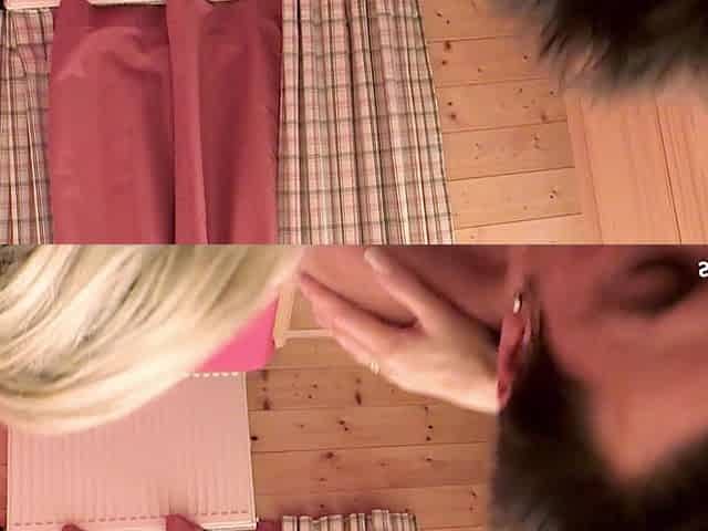 Blonde Mature Julia Pink Secretly Fucked by Guys in a Wooden Cabin