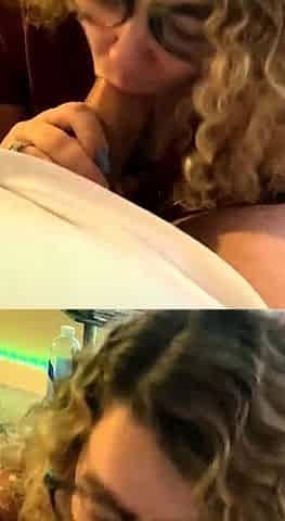 Hot Wife Sucks Her Man's Cock While He Watches Her Suck Cock on the TV