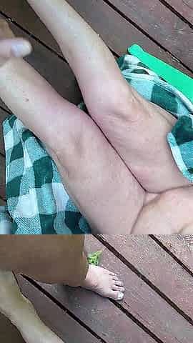 Fair skin freckled wife plays outside with her chap’s weenie, morning outside