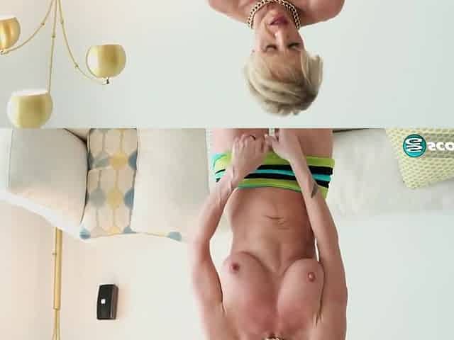 Skinny German Milf with saggy tits wants a threesome at amateur casting