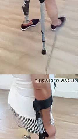 older golden-haired amputee