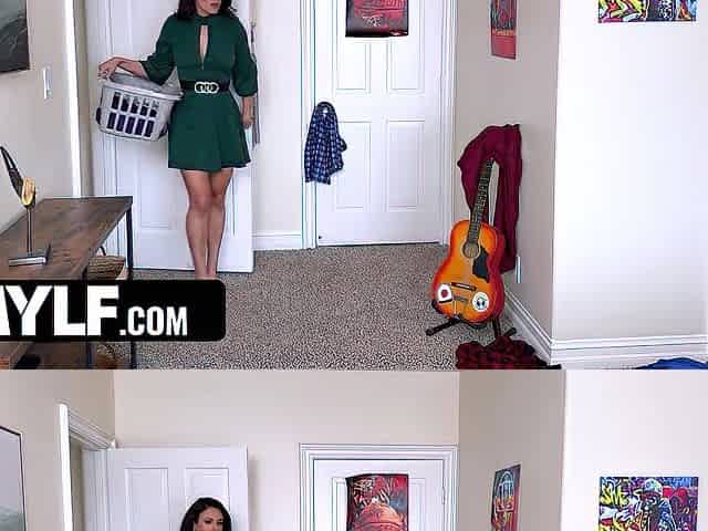 Lilly James bribes stepson with a huge cock & gets her ass pounded in bed