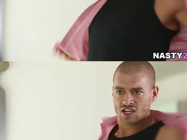 Sexy little housewife gives two hard cocks blow jobs then fucks