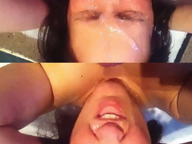 Super sexy blonde MILF in suspenders enjoys a sticky facial
