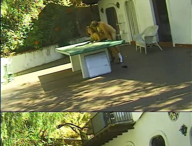 Mature horny stud enjoys erotically ramming a blond cunt on a table outdoors