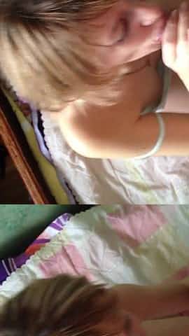 homemade, lovely blonde sucks and swallows cum