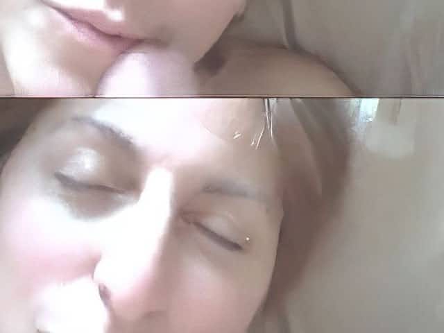 Nervous mid 40s woman‘s first bukkake with younger black lady
