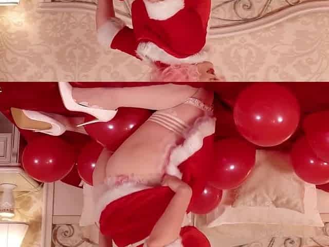 Santa Girl Tease You By Round Buttocks Naked Pierced Pussy And Air Balloons Fetish