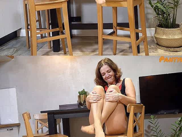 Classy mature blonde in dress gets fucked in her pantyhose by young boy