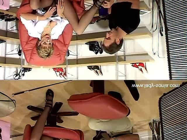 GirlsForMatures Video Caroline M and Kitty A, Ponytailed Kitty A was stroking her tired legs for they ached after a long day, an