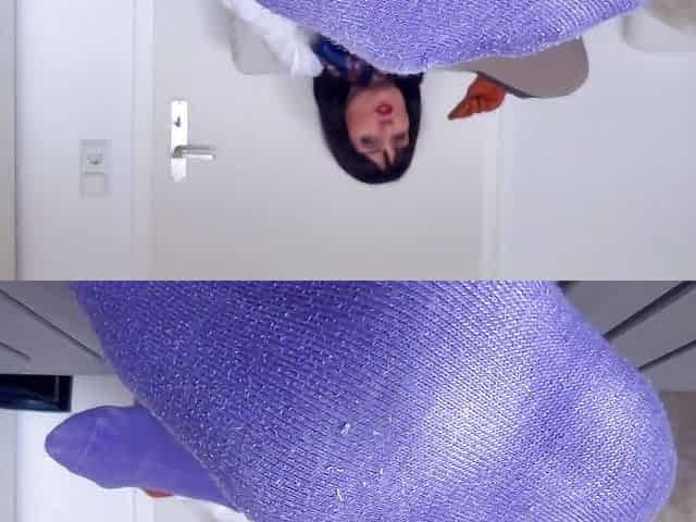 Intensive stinky sock sniffing training and allowed to cum on socked feet