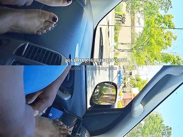 Horny MILF in Nylon Stockings Teases a Taxi Driver in the Car, with Her Sexy Legs and Feet in the Morning