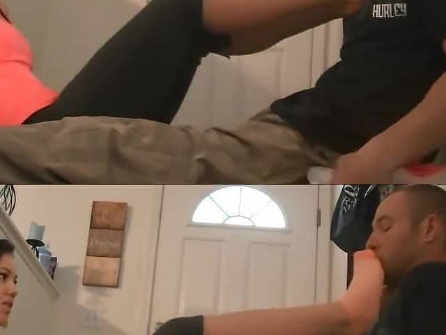 Interracial Foot Cumshot Licked By Busty Fetish Slut