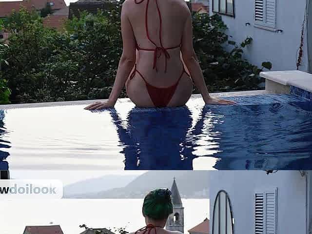 I get playful in a public pool whilst the householder is looking on me in the cameras
