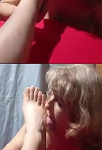 Mrs Aged Feet allowing her foot hunk to suck her toes