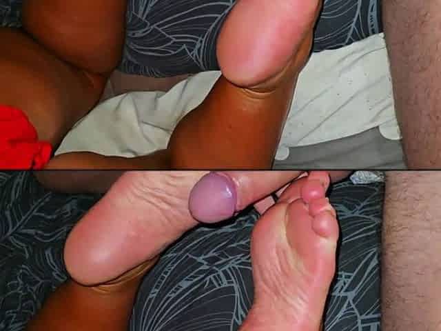 Hardcore mature foot fetish scene with footjob, pussy licking, and cumming