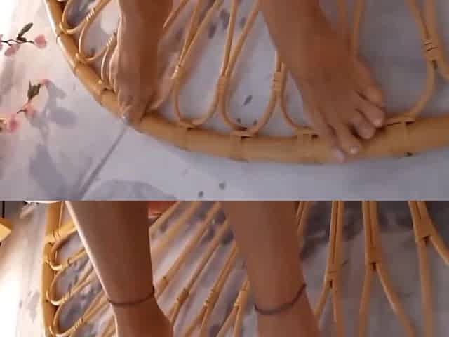 Lady Angela Masturbating with Bare Feet and Toe Rings, Shaved Pussy, Viibrator Nude Foot Fetish