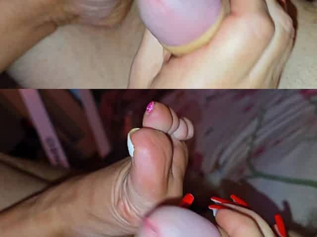 Mother-in-law Wears Nylon Socks and Rubs My Dick with Her Feet Until I Cum on Her Foot
