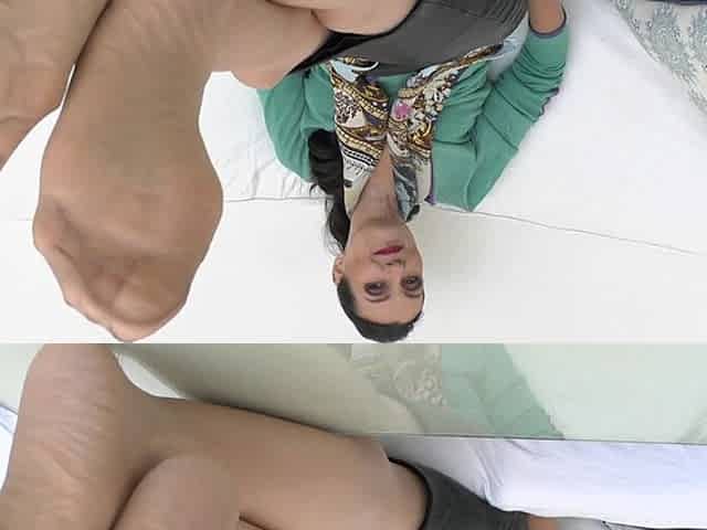 Horny babe Sinn Sage flaunts her stunning feet on the bed