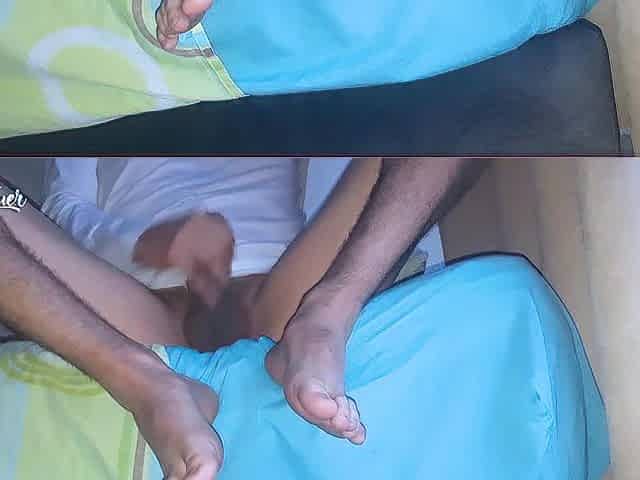 Masturbating my rich penis with the chair whilst showing the soles of my feet