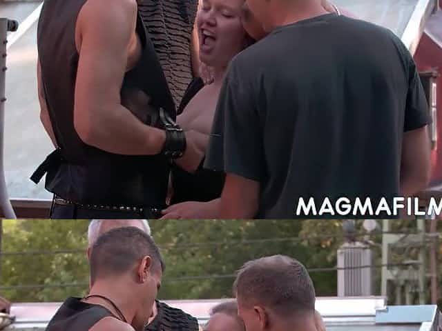 Red haired matured bitch gets gangbanged by kinky guys rough