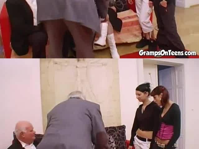 Teens eat grandpas cock in group orgy