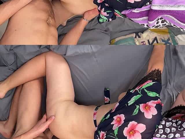 [subtitles] Sneaky New Year's Threesome: Hotwife Rides Young Stud Raw Tease & Massive External Cumshot