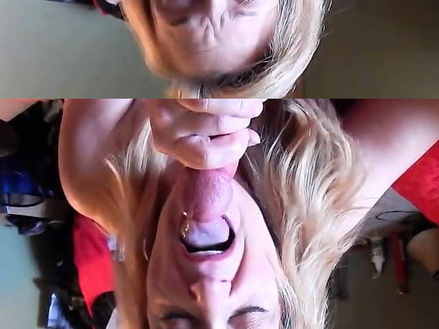 Beautiful mature babe gives a great blowjob and loves the taste of jizz