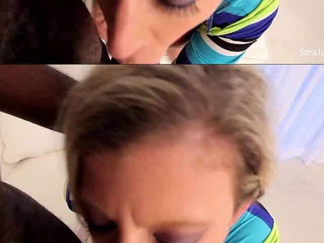 Interracial fucking in the bedroom with busty cougar Sara Jay