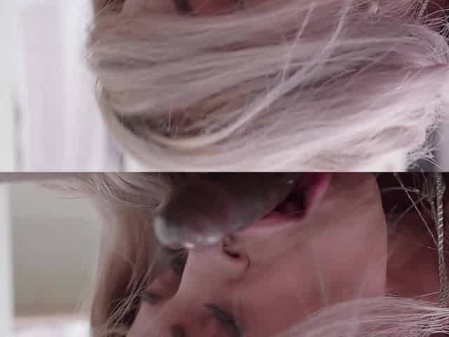 Perverted cuckold watches his busty blondie getting her mouth banged by black studs hard