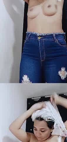 MY STEPMOTHER BATHING IN THE PATIO IN A BIKINI WITH HER UNBELIEVABLE BUTT