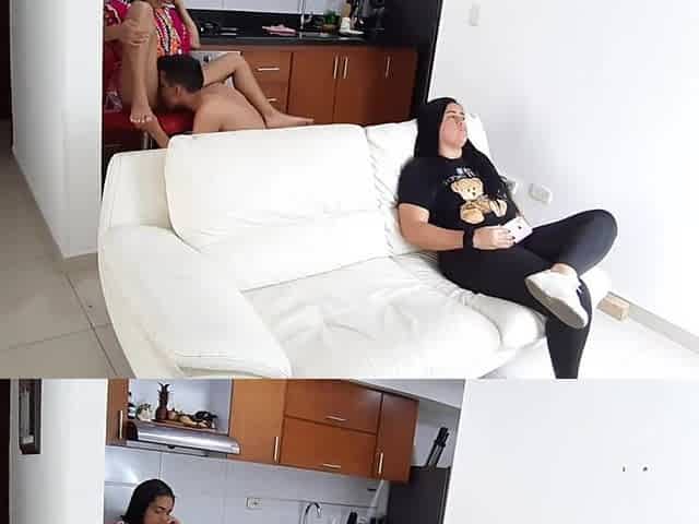 My stepcousin gets horny, she doesn't care that my stepsister is in the living room