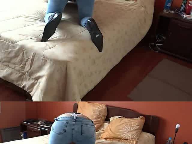 Stepson masturbates watching how stepmother puts on her bikini to go to the beach